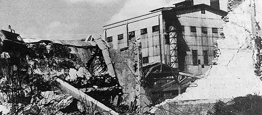 _ 1953년 전쟁으로 폐허가 된 수원 평동 선경직물 공장과 파손된 직기