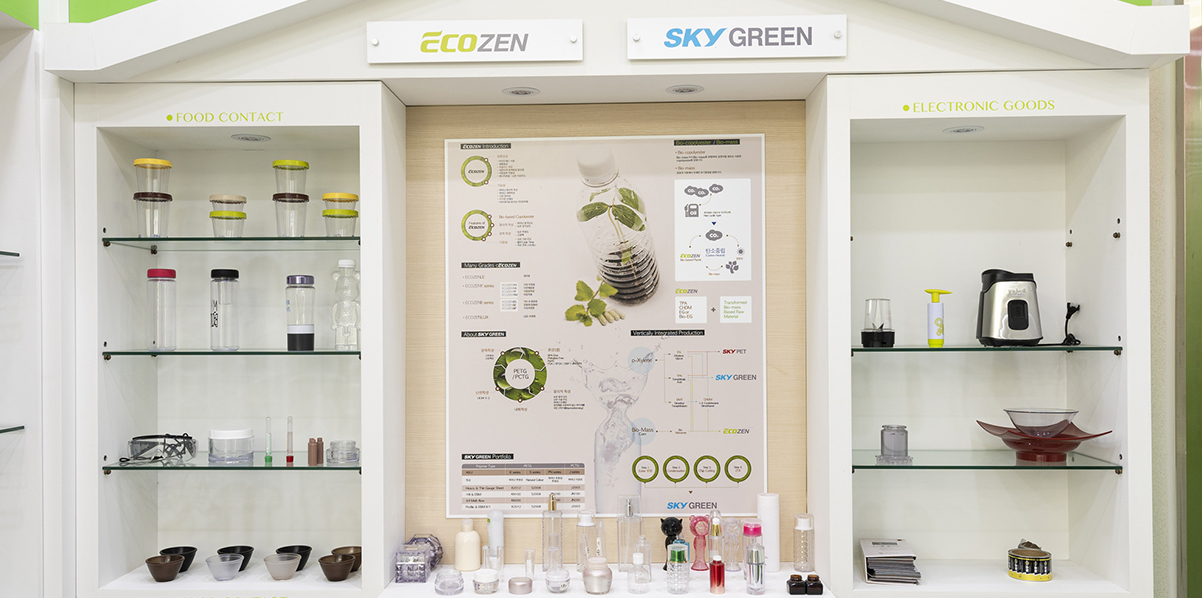 창립 이후 40년 가까이 주력 사업으로서 SK케미칼의 성장을 지탱했던 폴리에스터 섬유사업을 과감히 구조조정하고 2000년부터 친환경 플라스틱인 코폴리에스터사업으로 전환하면서 SK케미칼은 그린 케미칼 실현의 신호탄을 쏘아 올렸다. 대규모 투자의 부담을 안고 기술적 장벽을 뛰어넘으며 2000년 세계 두 번째로 환경호르몬인 비스페놀A가 없는 PETG(스카이그린)를 상업생산한 데 이어 2009년에는 세계 최초의 친환경 고내열 코폴리에스터(에코젠)를 개발해내 바이오 플라스틱의 새 장을 열었다.