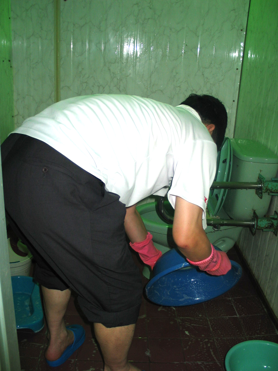 목욕운영팀은 말로 표현하기 힘든 자세로 쭈그려 앉아 고생했다. 찜통더위에 뜨거운 물로 중증장애인들을 목욕시키자니 여간 힘든 일이 아니었다.