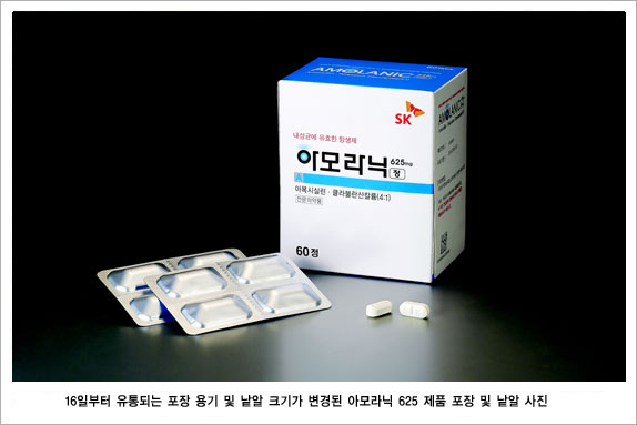 SK케미칼(대표이사 金昌根 부회장)은 아모라닉 625mg 정 (성분명: 아목시실린Amoxicillin, 클라불란산 칼륨 potassium clavulanate)제제의 포장 및 낱알 크기를 을 2월 16일부터 변경한다.