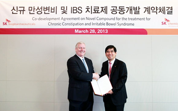 SK chemicals and SK Biopharm intend to conduct clinical trials of the drug under different conditions in Korea and abroad. More specifically, SK chemicals will test its effect for treating the irritable bowel syndrome with constipation, while SK Biopharmaceuticals will test its effect as a treatment for chronic constipation.