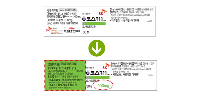 기존에는 이 제품들의 포장용기 라벨에 적용된 시각적 차이점이 크지 않아 유통 과정 및 조제 과정에서 제품 혼동의 우려가 있었다. 이에 SK케미칼은 시각적으로 명확하게 제품을 구분할 수 있도록 함량 표기를 확대하고 각 제품별 고유 색상을 포장 용기 측면까지 확대하는 등 라벨 디자인을 변경했다.